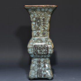 宋官窑官瓷刻字描金赏瓶摆件:此造型美观大方,做工精湛,胎质细腻光滑.细白如玉.手感柔软舒适。极其少有,自然磨损,老味十足,值得收藏:尺寸25x13.5厘米.¥407