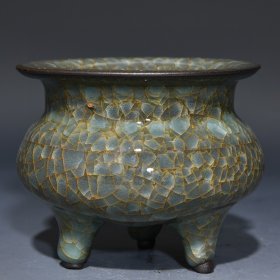 收藏品!回流瓷器!宋官窑官瓷刻字描金四足双耳鼎摆件:该器型规整、皮壳陈旧,底部刻字!品相完美。老味十足,自然磨损,是一件不可多得的艺术珍品,值得你拥有,尺寸19*23厘米,¥777