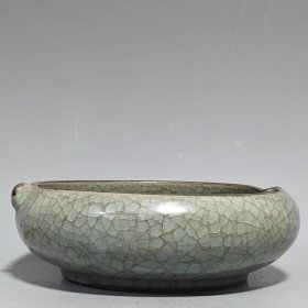 宋官瓷冰裂纹花口洗;高7.5cm直径22cm;价540