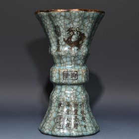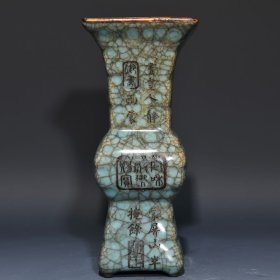 宋官瓷冰裂纹包口刻诗花觚 ;高23cm直径14cm ;价400