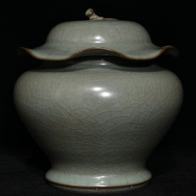 宋官瓷荷叶盖罐,高22cm直径21cm
