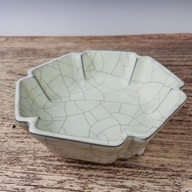 宋官瓷冰裂纹花口盘 ;高3.2cm直径17cm ;价360