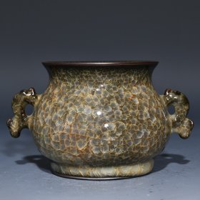 宋官瓷冰裂纹双耳炉,高7.3cm直径12cm