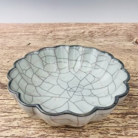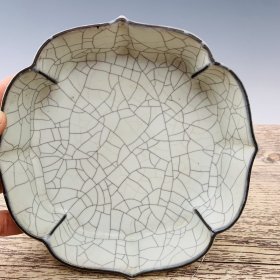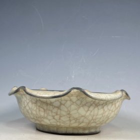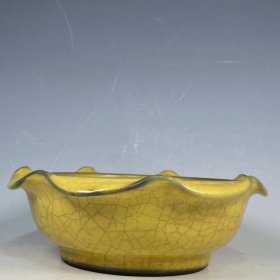 收藏品!宋官窑官瓷象牙黄冰花刻字描金.荷叶口型双色笔洗摆件:该器型规整、皮壳老辣、品相完美。老味十足,自然磨损,值得你拥有,尺寸8x24.5厘米,