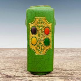 收藏品!宋官窑官瓷金丝铁线笔洗摆件:该器型规整、手工制作,做工精致。皮壳老辣、品相完美。老味十足,自然磨损,值得你拥有,尺寸8x22.5厘米,