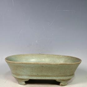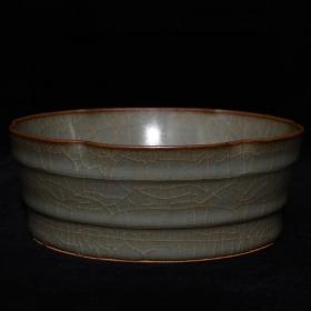 瓷器收藏品!宋官窑官瓷金丝铁线双色笔洗摆件:该器型规整、手工制作,做工精致。皮壳老辣、品相完美。老味十足,自然磨损,值得你拥有,尺寸8x23厘米,