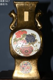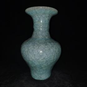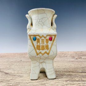 宋官窑官瓷刻字描金赏瓶摆件:此造型美观大方,做工精湛,胎质细腻光滑.细白如玉.手感柔软舒适。极其少有,自然磨损,老味十足,值得收藏:尺寸25x13.5厘米.