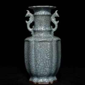 宋官瓷六方凤耳瓶