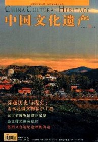 中国文化遗产 2010年第1期【目录】:大遗址记忆的中国大历史扫描▲大遗址保护与考古遗址公园建设▲十座城市的大遗址保护实践▲宁波近代石库门建筑▲武汉抗战遗存“保卫大武汉”的见证▲大辽祖陵探秘▲最后的南京老城南▲姜寨遗址发掘回望▲闽台人共同的精神文化家园 中国闽台缘博物馆▲特拉维索文化遗产印象▲