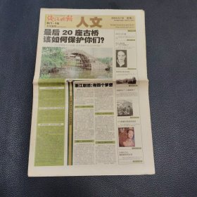 钱江晚报2004年5月18日人文版16版齐全 浙江剧团有4个梦想,最后20座古桥该如何保护你们,十面埋伏戛纳首映出了,纪念昆曲被颁布为人类口头遗产和非物质文化遗产三周年系列报道-马科:昆曲是开放的,世界最美模特小姐将在杭州诞生,漫画名家专版,嘉德春拍刷新多项中国艺术品世界纪录