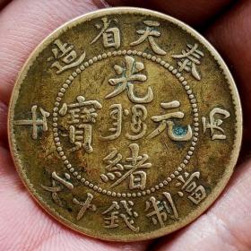 真品古币,光绪元宝北洋造十文,背江苏飞龙混版,字体币文饰龙纹完整,传世包桨纯正自然!