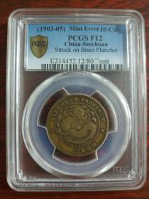 四川官局造 光绪元宝 每枚当钱十文 黄铜 PCGS 金盾评级 F12 Mint Error 加注:Struck on Brass Planchet 孤品
