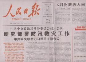 2020年7月18日 人民日报 研究部署防汛救灾工作 国务院印发意见 促进国家高新技术产业开发区高质量发展 保护革命文物 传承初心使命 农业文化遗产具有非同寻常的意义 共8版