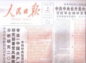 2023年12月9日 人民日报 分析研究2024年经济工作研究部署党风廉政建设和反腐败工作审议中国共产党纪律处分条例 征求对经济工作的意见和建议 召开党外人士座谈会 举行宪法宣誓仪式 共八版