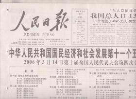人民日报 2006年3月17日(华东版)【原版生日报】中华人民共和国国民经济和社会发展第十一个五年规划纲要●李庄同志逝世●豫东南红军和苏区创建人:周维炯●