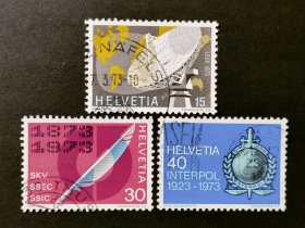 瑞士邮票,1973年年度事件:卫星站.商人协会100周年.国际刑警组织50周年邮票3全