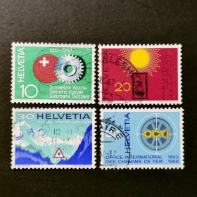 瑞士邮票,1967年年度事件:老年基金会50周年.公路隧道开通.国际铁路运输中央办公室75周年等4全