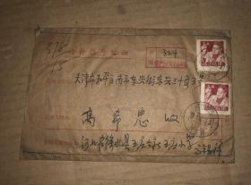 60年代实寄封 特种挂号信函 河北省寄往天津市 贴有2张普票