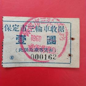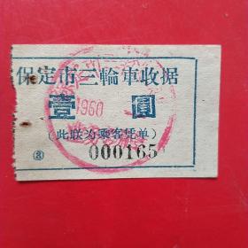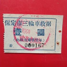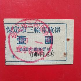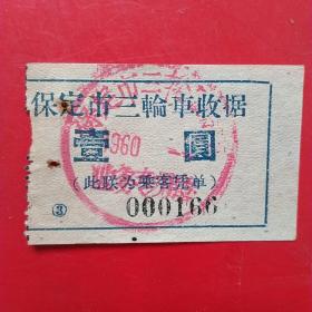 60年代,保定三轮车票8。(8-7,生日票据,运输类票据)