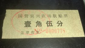 60年代湖州吴兴农场航船票