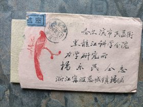 60年代航空实寄封:10分票+彩绘锦鸡 封