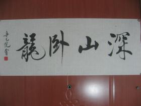 【8—880】名家书法纯手工书写 临摹仿制中国著名书画艺术大师范曾的字体书写诗句《深山卧龙...》长88cmx宽35cm画边撕裂破损 品相如图(未裱)