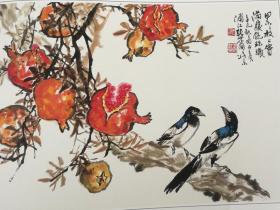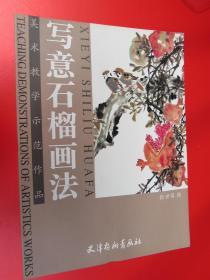 美术教学示范作品 写意石榴画法 张世简(石榴画法 技法步骤 怎样画石榴 自学美术教材 怎样画木本花卉 绘画技法 构图勾勒填色画法步骤 临摹范画 花卉蔬果作品 画集)大开本4开
