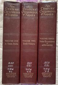 New Century Cyclopedia of Names 新世纪世界人名、地名和历史事件百科全书 (全3卷)漆布面精装 书脊、封面烫金图案 三册书厚达 23.5 cm