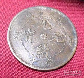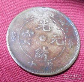 老光绪元宝湖北造当十背水龙铜元古泉币铜板 古钱币铜钱真品钱币 TY334