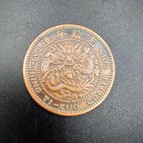 大清铜币丁未十文盘龙铜元清代古泉币铜板古钱币铜钱保真品钱币 TY364
