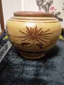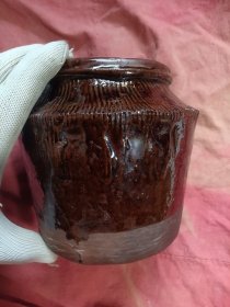 清民国黑釉老鱼磷坛子罐子