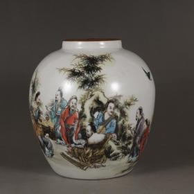 同治粉彩人物故事罐子坛子 瓷器