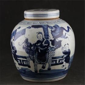 清青花人物图老坛子罐子