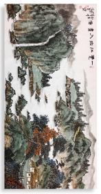 【名家作品精品推荐】【杨宝树教授作品独家代理】杨宝树,清华大学美术学院书画高研班导师,中国人民大学画院高研班导师、特聘教授,江苏省直美协理事六尺整张横幅青绿山水画《满庭诗境飘红叶,绕砌琴声滴暗泉》180×97cm