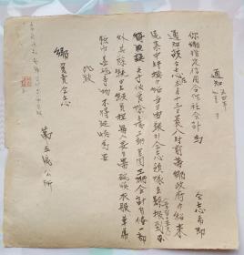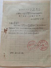 50年代江西省上饶市银行通知手写一张。
