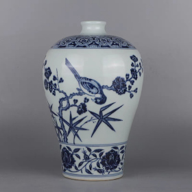 明青花花鸟纹梅瓶
