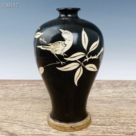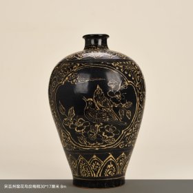 磁州窑黑釉刻花花鸟纹梅瓶