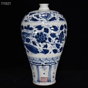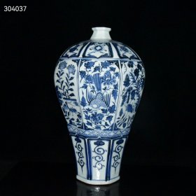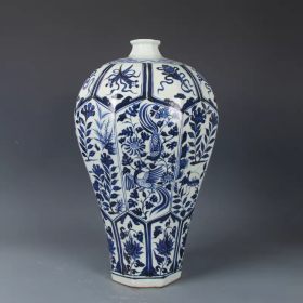 珍藏元代青花开窗花鸟昆虫八方梅瓶