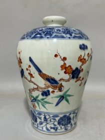 青花釉里红手绘花鸟纹梅瓶