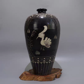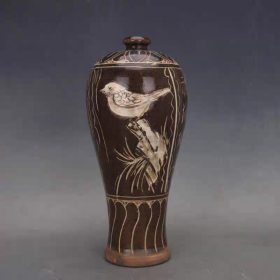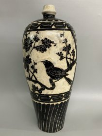 宋磁州窑刻花鸟纹梅瓶,高40厘米直径17厘米