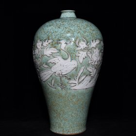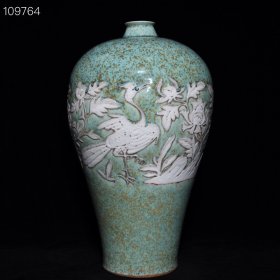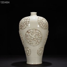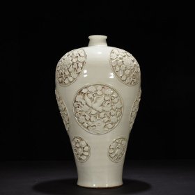 枢府釉开光浮雕花鸟纹梅瓶,2500
