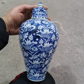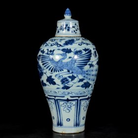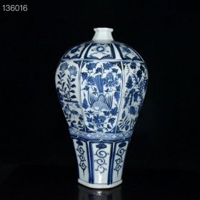 明青花开仓捏花花鸟梅瓶,,46×23。