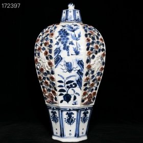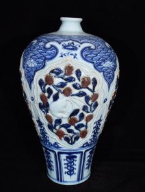元青花釉里红捏花花鸟纹梅瓶,高49cm直径25.5cm,