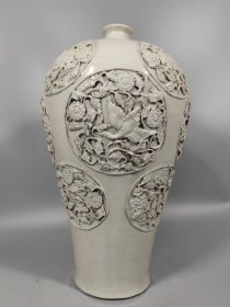瓷器 元甜白釉贴塑花鸟纹梅瓶 43*25厘米