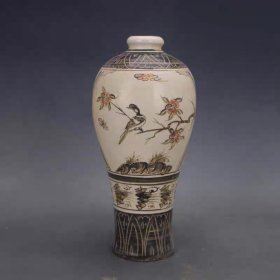 磁州窑手绘花鸟梅瓶