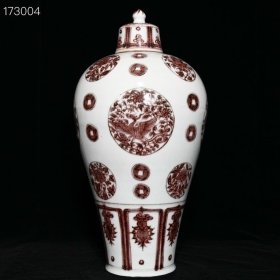 元釉里红花鸟纹梅瓶,高47.5cm直径24cm