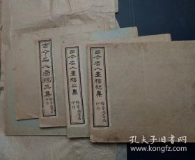 Q976,少见书画古籍,宣统元年上海鸿文书局石印本:古今名人画稿初集/二集/三集,线装6册全,每册30页60副,印刷精良,除一册品较差外其他品不错