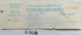 门券 参观券 门票 浙江 奉化 溪口风景点游客人身意外伤害保险单