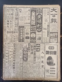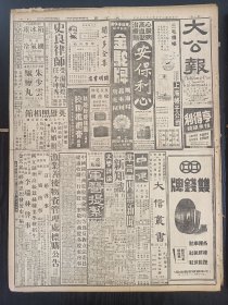 1948年7月25日 大公报上海版之一:津浦南段昨肃清,陈毅部退皖北国军追击中,国军收复武清,陈衡哲《克服困难的心理准备》,奥运会消息,货机改客机天王号改装完成有照片,马思聪决来沪演奏,重庆、天津、汉口、无锡、郑州等地商情,芜湖站在大水中有照片,公孙正《滇缅北段》,大公园专栏有黎辛、杨松浦、李纹、杨松泉等人文章