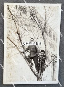 抗战时期 苏州、常熟、常州一带的中国小女孩与日军步兵第54联队士兵站在盛开的桃树上合影 原版老照片一枚(1938年8月2日,日军第17师团步兵第54联队在上海登陆,联队本部驻扎苏州,曾转战于无锡、宜兴、常州等地,其中一部还参加了武汉作战,武汉会战之后在苏州地区担任警备和维持治安等任务,期间经常在占领区进行“清乡”作战。)